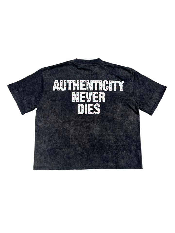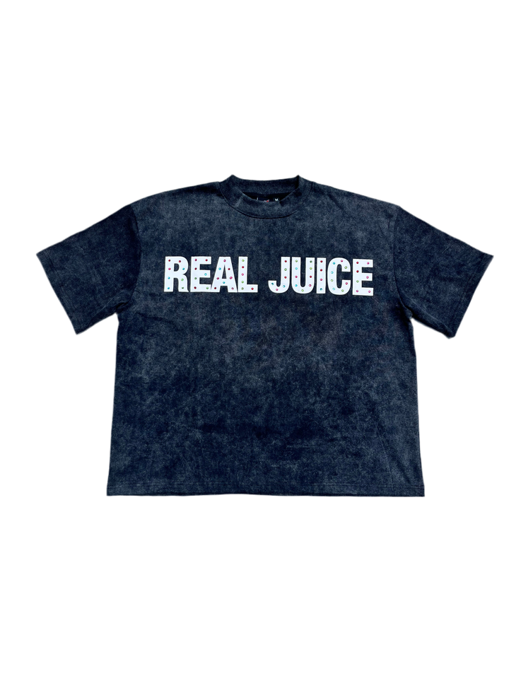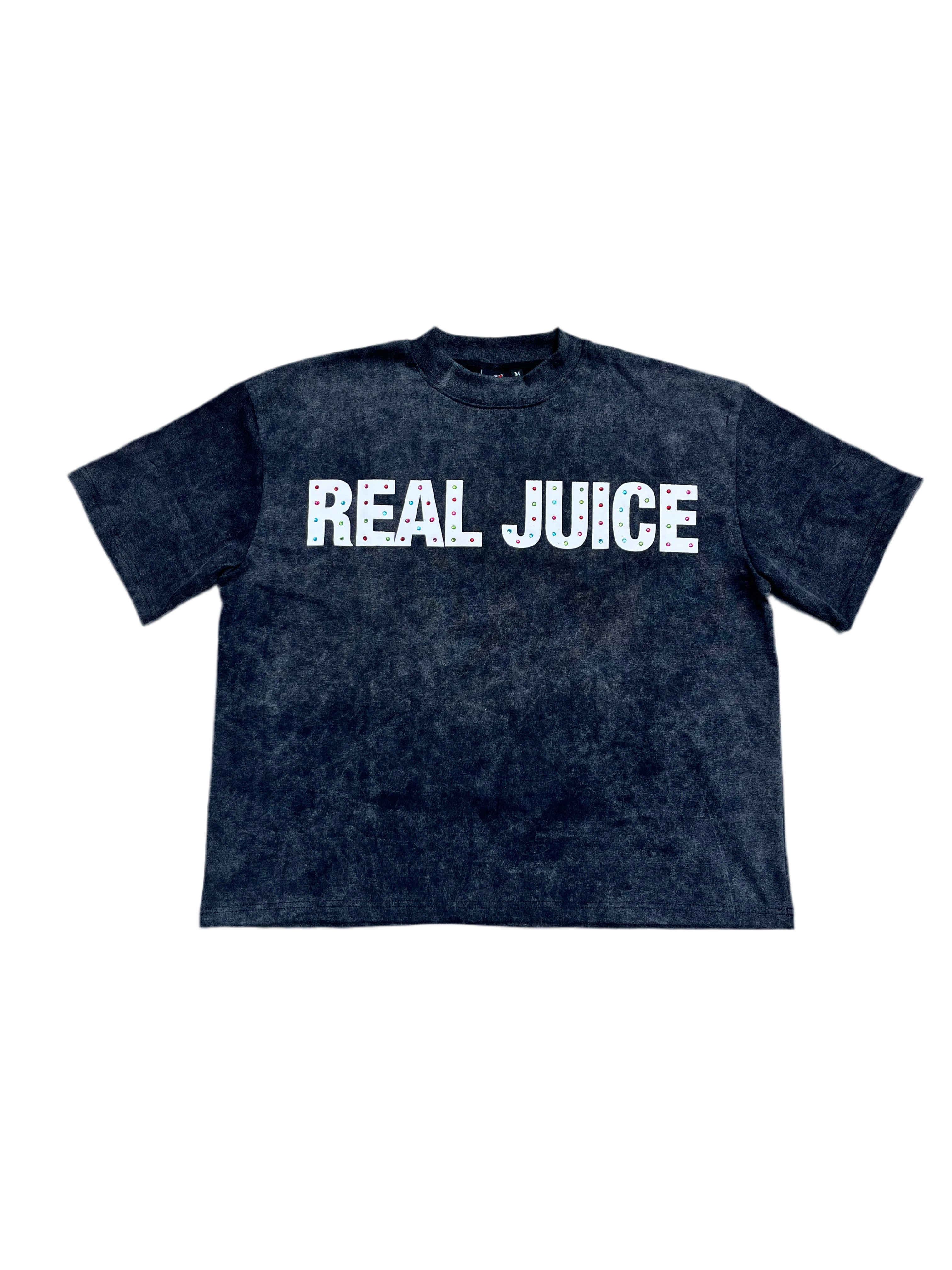 Made from 280 GSM jersey cotton, this tee features an oversized fit and bold typography. The black version is acid-washed for a worn-in, vintage look. Each shirt comes with unique rhinestone placement, so no two are exactly alike.